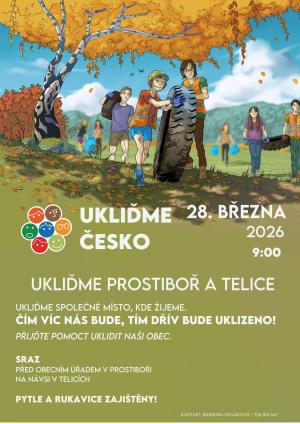 V sobotu 28. března 2026 se Prostiboř a Telice opět zapojí do celostátní dobrovolnické akce Ukliďme Česko. Srdečně zveme všechny, kterým není lhostejné prostředí kolem nás, aby přišli pomoci uklidit naši obec a její okolí.