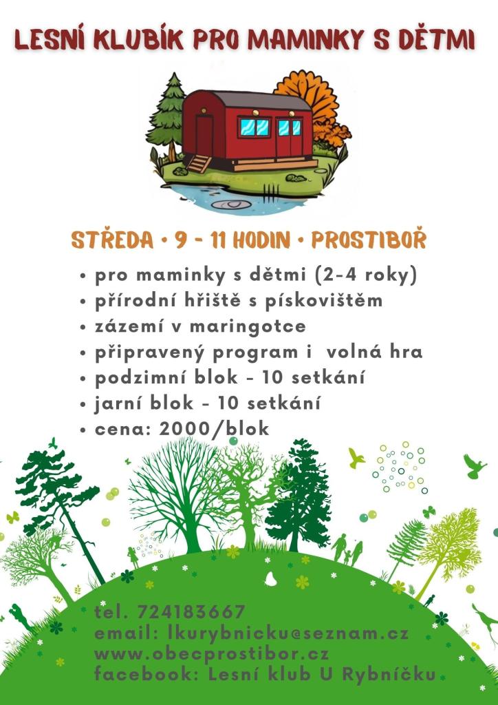 Každou středu dopoledne od 9 do 11 hodin se potkáme v krásném prostředí Prostiboře. Čeká vás: